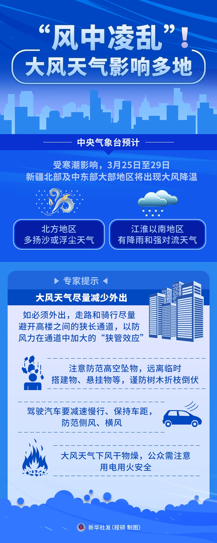 新华社北京3月25日电 题:“风中凌乱”!大风天气影响多地