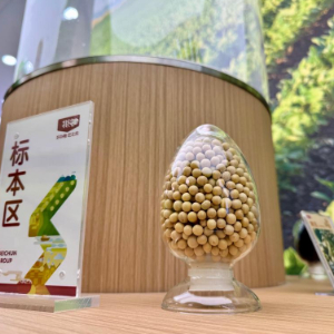 这是穆棱市北纯农业科技有限公司展出的黄豆。新华社记者刘赫垚 摄