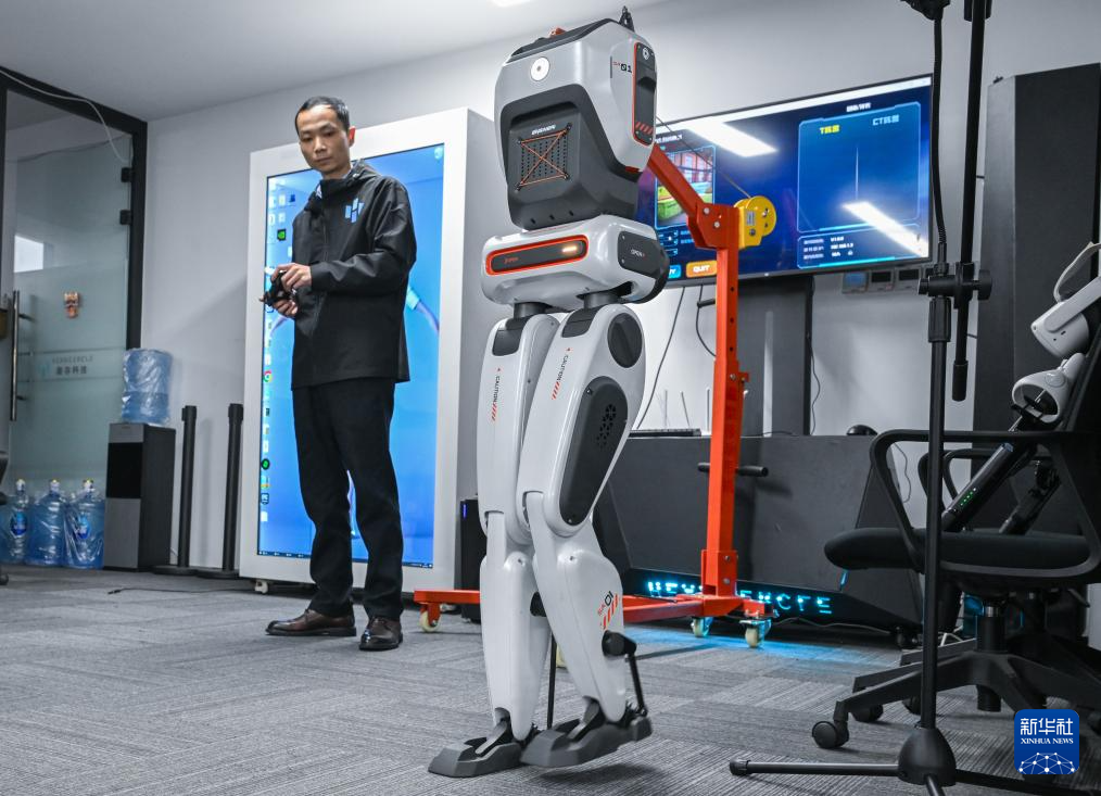 3月24日,研发人员在调试人形机器人运动神经中枢系统。