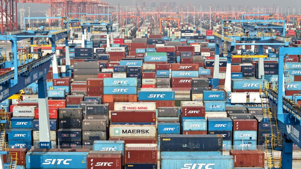 钦州港集装箱自动化码头存放的集装箱。新华社记者吕帅 摄