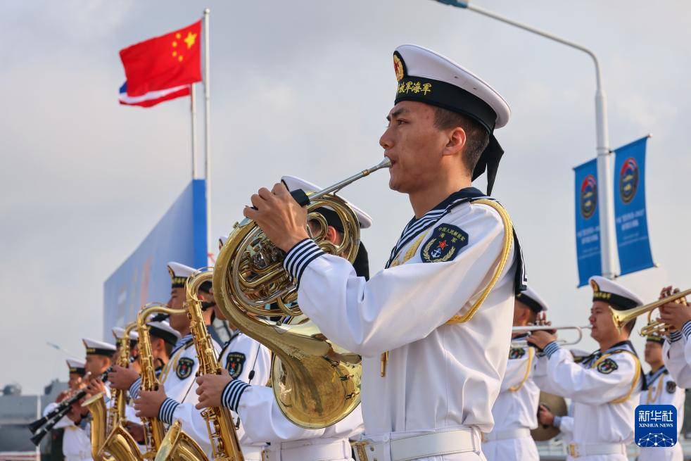3月26日,中泰“蓝色突击-2025”海军联合训练开幕式在广东湛江举行,军乐队奏两国国歌。新华社发(乔晨曦 摄)