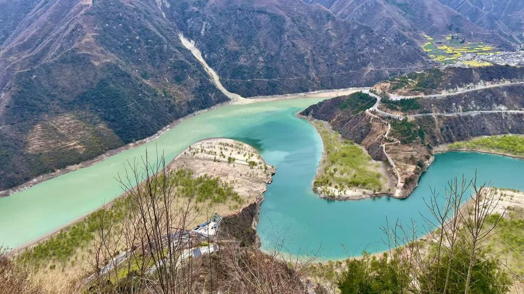 从甘肃玉垒乡冉家村旁的观景台向下远眺,白水江、白龙江在此交汇东流。新华社记者李杰 摄