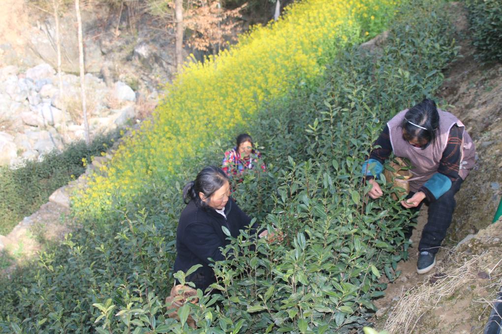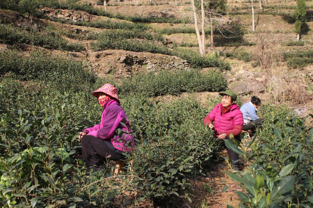 在文县中庙镇茶园村,村民正在采摘茶叶。新华社记者李杰 摄