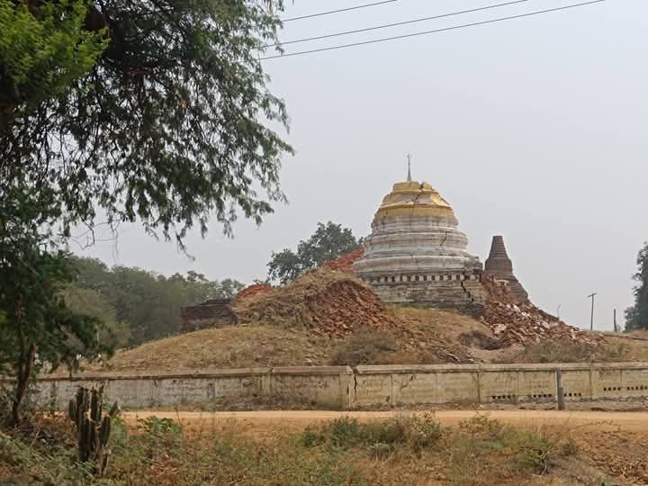 这是3月28日在缅甸曼德勒省拍摄的地震后受损的佛塔。新华社发