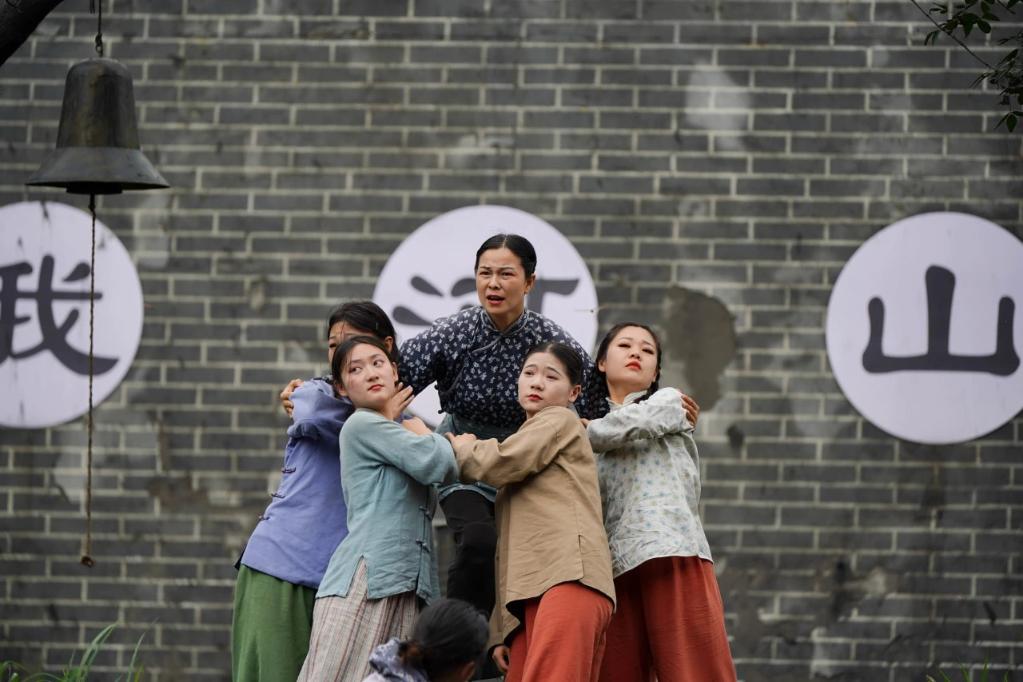 在陕西延安,沉浸式情景剧《再回延安》中,伸展的红旗缓缓铺开、轻轻落下,人们纷纷伸手触摸这铺天盖地的“革命红”;在山东临沂的红嫂故里沂南县,当地排演的沉浸式山村剧场作品《沂蒙四季·红嫂》中,一名名沂蒙妇女时而扛着门板跌撞前行,时而将门板背在身上,带观众重回孟良崮战役期间沂蒙妇女“勇架火线桥”的场景之中。
