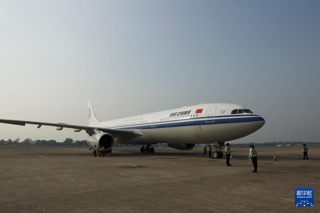 当地时间3月29日下午,中国救援队乘坐的飞机抵达缅甸仰光国际机场。新华社发(亨曼摄)