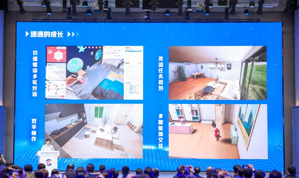 房间乱了会主动做家务,肚子饿了就满屋子找吃的,无聊时还会打开电视机……日前,在2025中关村论坛年会举行的通用人工智能论坛上,电子大屏中一个表情灵动、反应敏捷的仿真小女孩吸引了现场观众的目光。