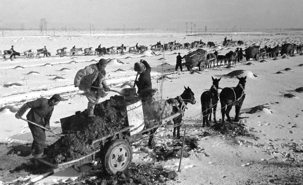 1971年3月,在山西北部地区,农民往地里送肥备耕(资料照片)。新华社记者 游云谷 摄