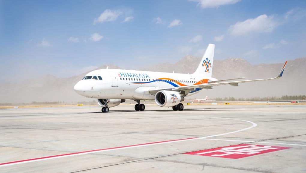 3月31日,执飞拉萨至博卡拉航线首飞任务的喜马拉雅航空H9731次航班抵达拉萨贡嘎国际机场。新华社记者 丁增尼达 摄