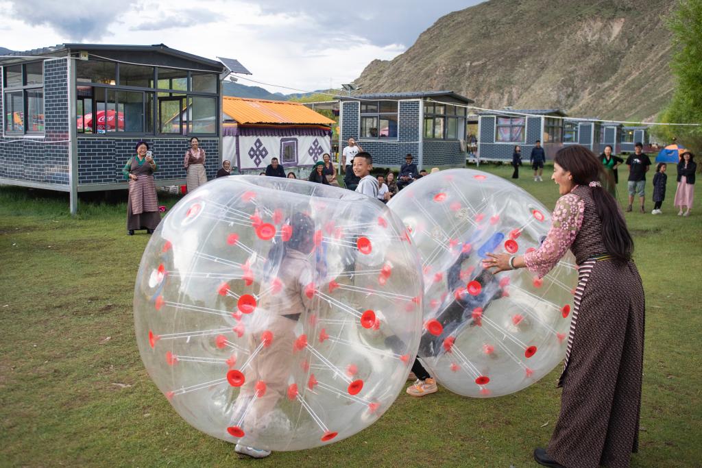 2021年8月11日,人们在拉萨市达孜区一处林卡营地“过林卡”时玩游戏。“林卡”在藏语中意为园林,“过林卡”类似郊游、踏青。