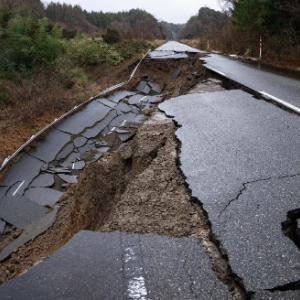 2024年1月2日,在日本石川县羽咋郡,道路被地震损坏。石川县能登半岛2024年1月1日发生7.6级地震并引发海啸。新华社记者 张笑宇 摄