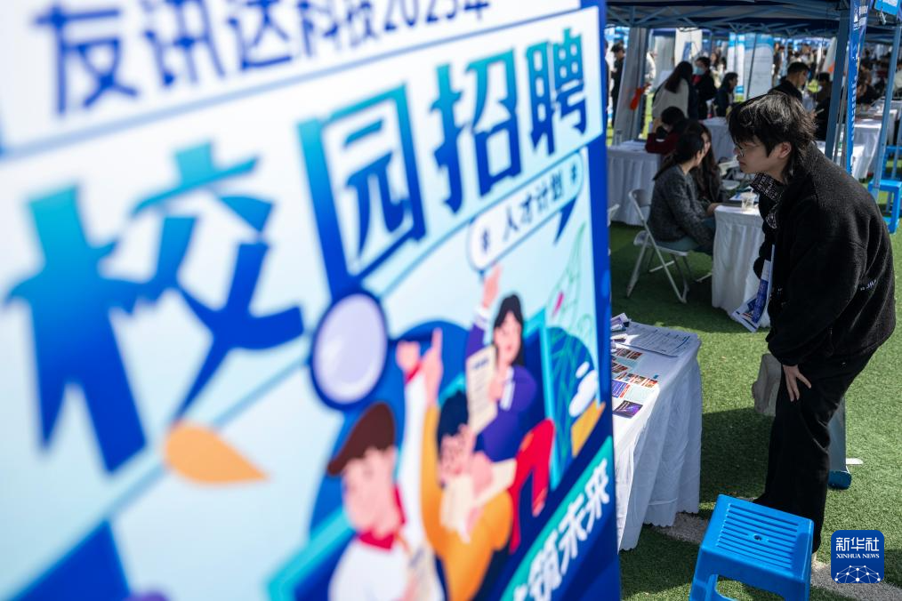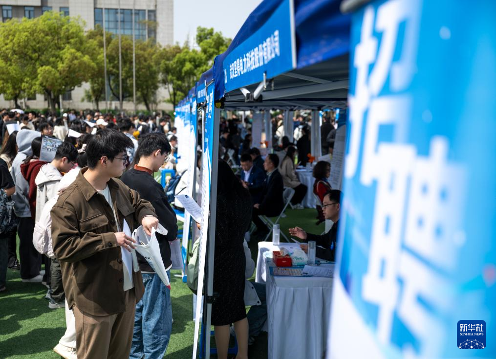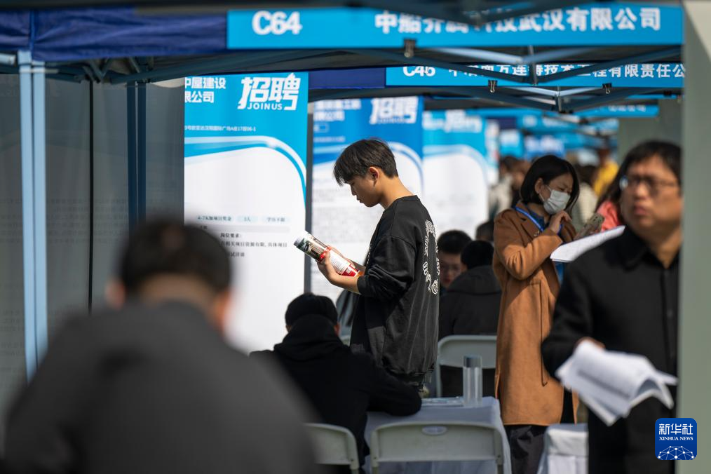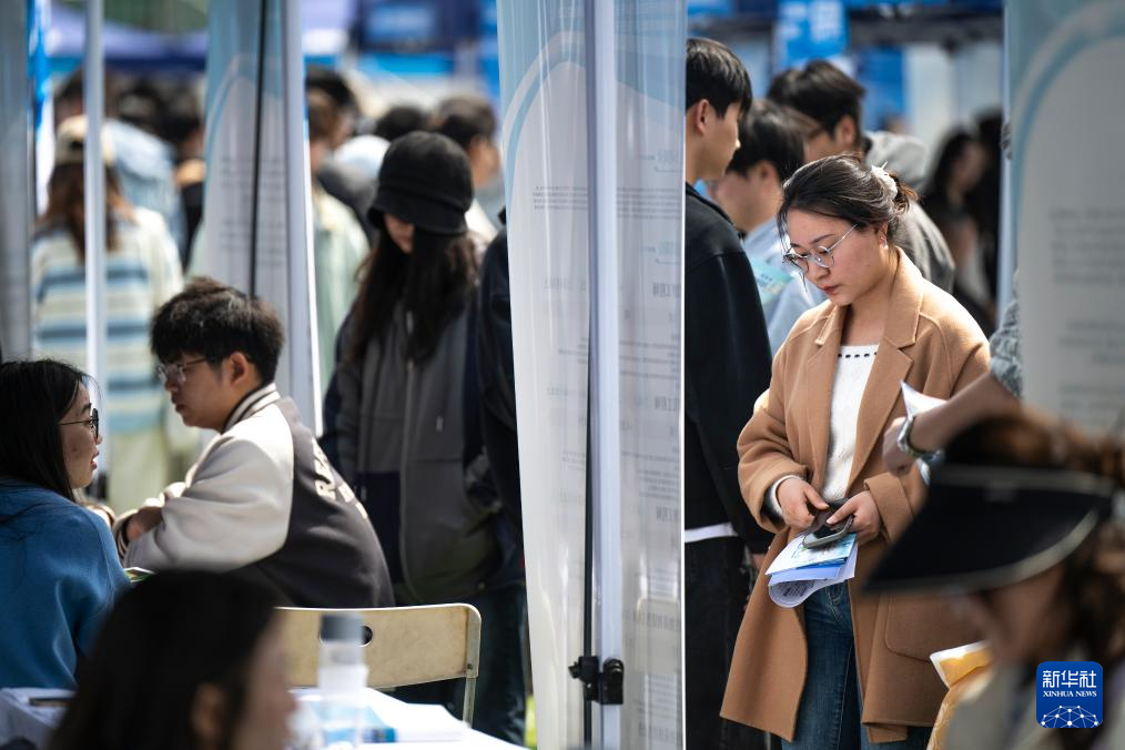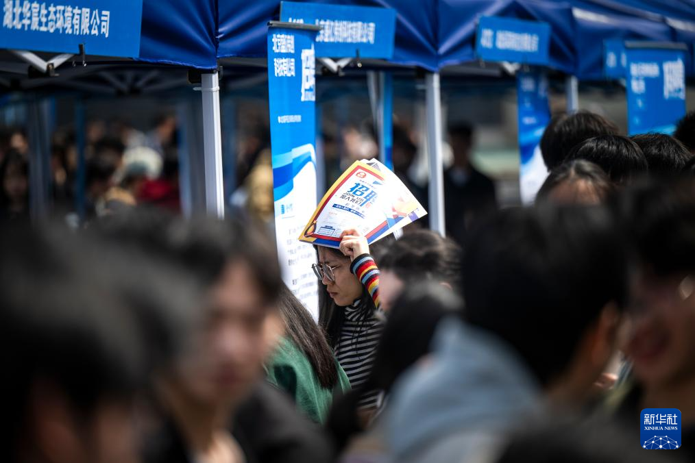 4月1日,求职者在湖北工业大学专场招聘活动现场了解岗位信息。新华社记者 伍志尊 摄