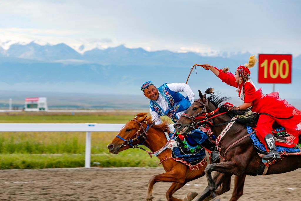 2024年7月10日,新疆代表团运动员在新疆昭苏参加表演项目竞技类“姑娘追”比赛。新华社记者 陈朔 摄