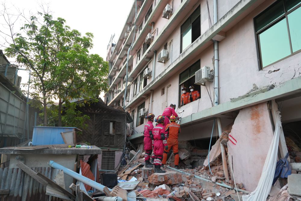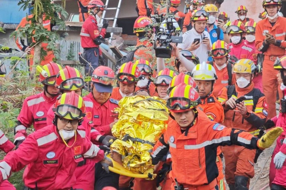 4月2日,在缅甸曼德勒,中国救援队伍救出一名幸存者↓