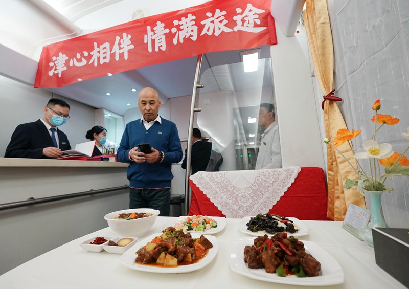 3月15日在2025年京津冀首趟银发旅游列车餐车拍摄的美食。 新华社记者张晨霖 摄