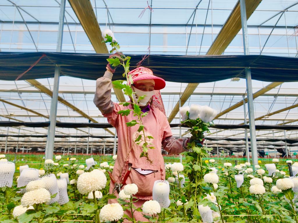 蓬勃发展的鲜花产业还催生助农增收的联农带农机制,基地附近的村民不仅可以在基地里务工,还能通过流转土地收取租金、参与农民合作社分红。“现在每个月采花收入能有3000元左右,加上土地租金每年总收入有5万多元。”花农金丽纯说,越来越多的村民选择到花卉基地上班,实现家门口就业。