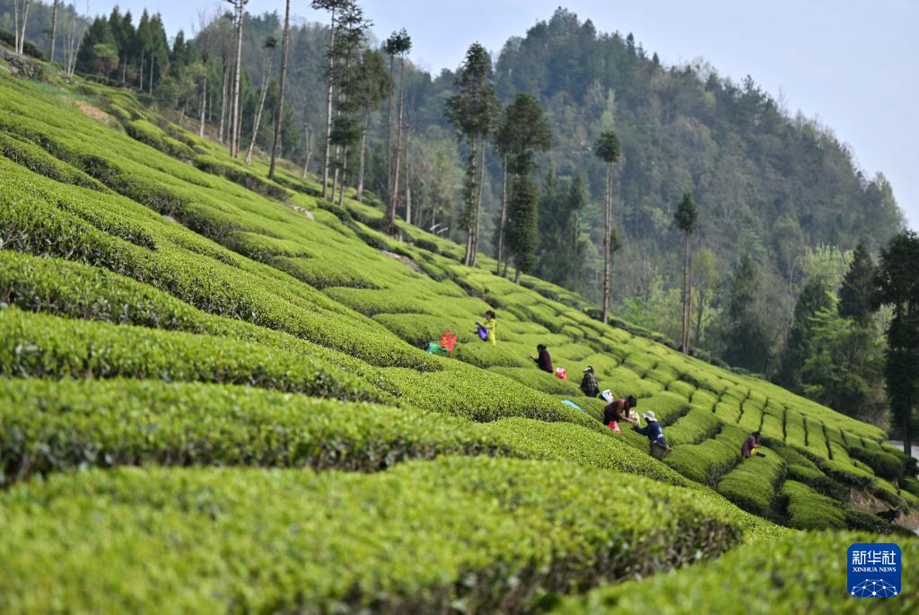 4月4日,茶农在湖北省宣恩县椒园镇一茶园里采茶。