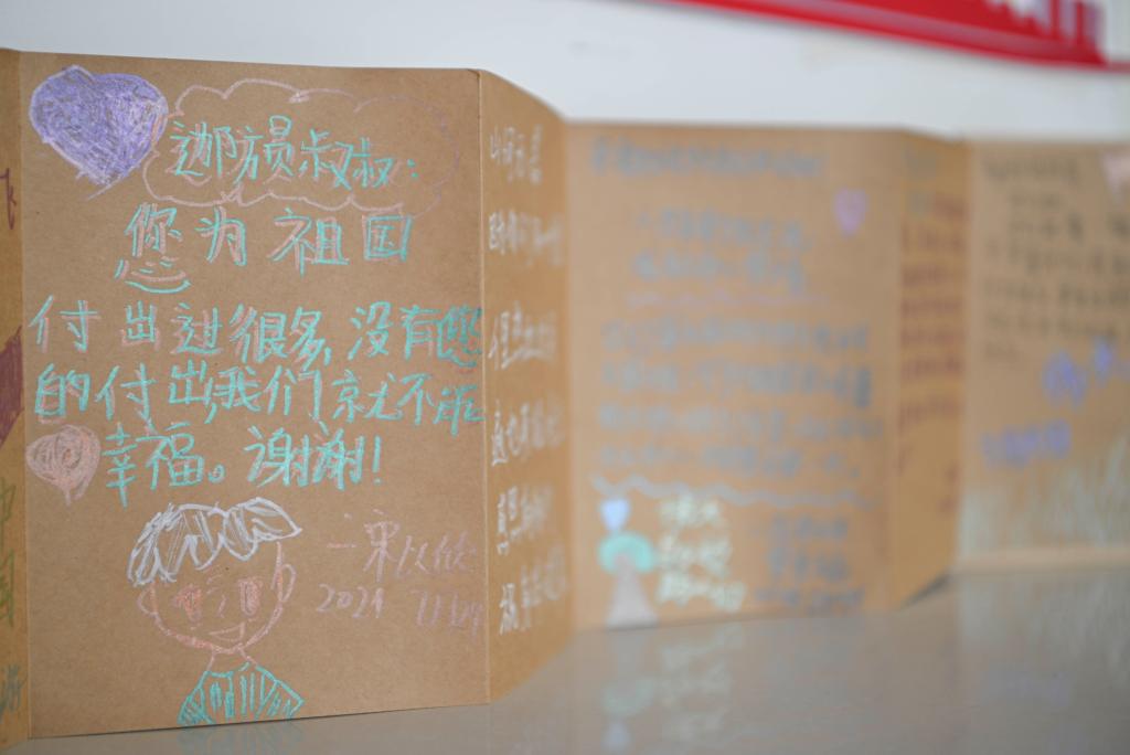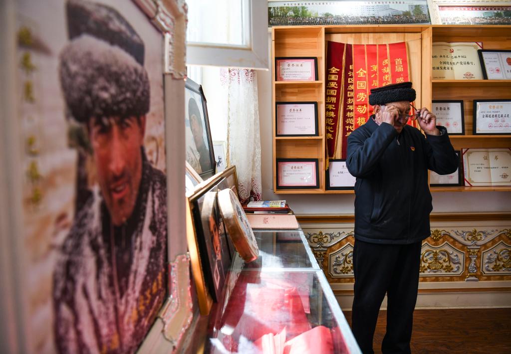 在这个工作站,拉齐尼曾经的宿舍已被改造为爱国守边传承馆,里面摆放着英雄生前使用过的水壶、牧鞭、警棍等物品。房间的一角,还陈列着写满了各地游客留言的纪念本,上面有不少都是小朋友的稚嫩笔迹。