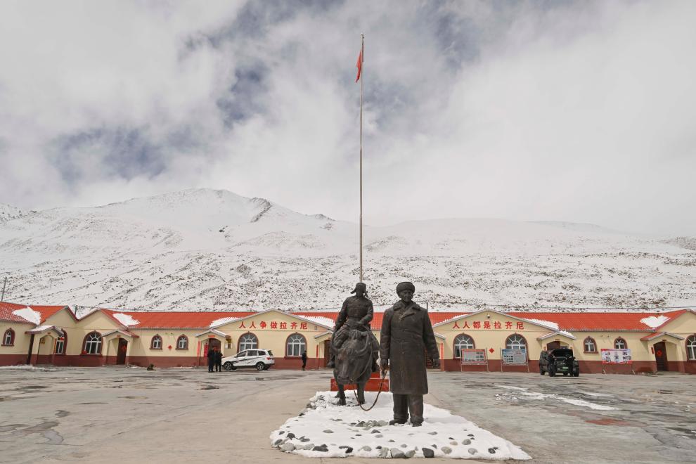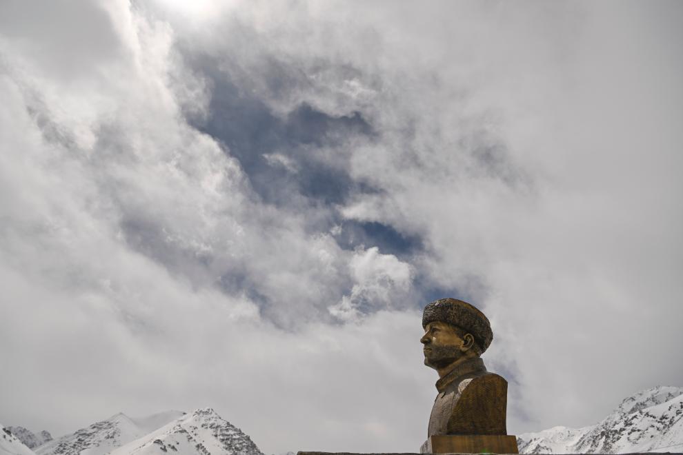 这是在新疆塔县的一处护边员工作站拍摄的一尊拉齐尼雕塑(2025年3月30日摄)。新华社记者 胡虎虎 摄