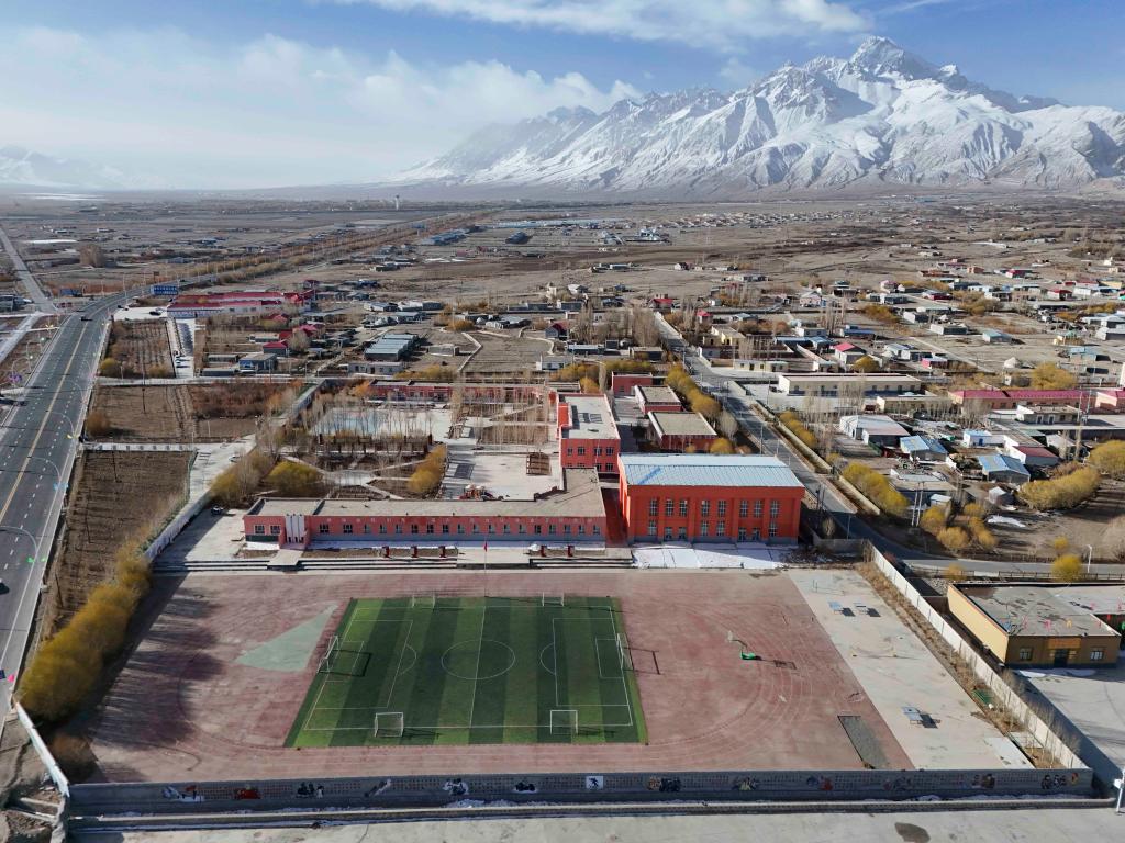 位于新疆塔县提孜那甫乡的拉齐尼小学(2025年3月30日摄,无人机照片)。新华社记者 胡虎虎 摄