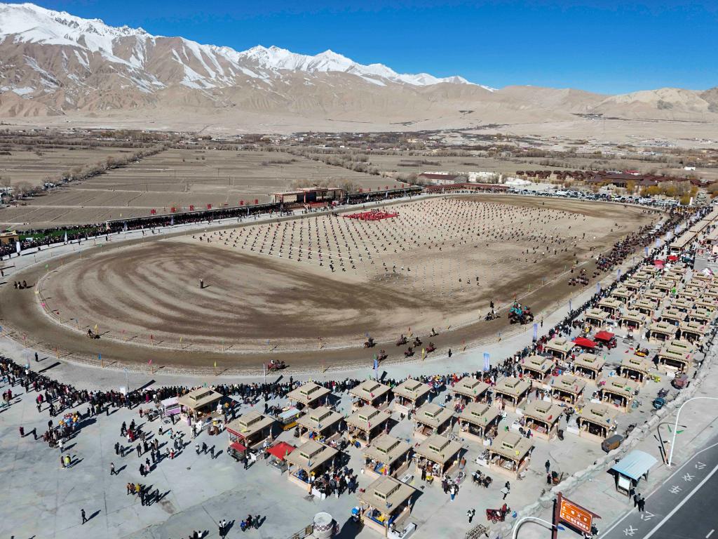 新疆塔县春季文旅活动在提孜那甫乡赛马场举行(2025年3月23日摄,无人机照片)。新华社记者 胡虎虎 摄
