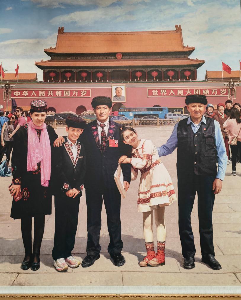 环顾屋内,墙壁上多了幅油画。这幅画栩栩如生,实现了拉齐尼的未了心愿:在天安门前拍一张全家福。画中,女儿都尔汗·拉齐尼俏皮地挽着父亲的左胳膊,依偎着父亲。2025蛇年春晚上,都尔汗身着节日盛装,笑容腼腆,作为“全国新时代好少年”代表,讲出“和父亲、爷爷一样守卫边疆”的梦想。