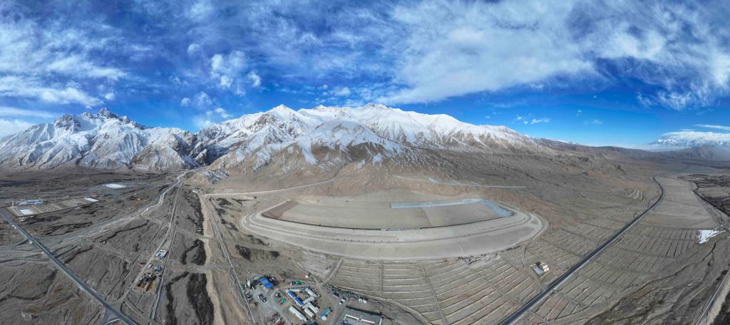 建设中的阿然保泰水库(2025年3月30日摄,无人机全景照片)。新华社记者 胡虎虎 摄