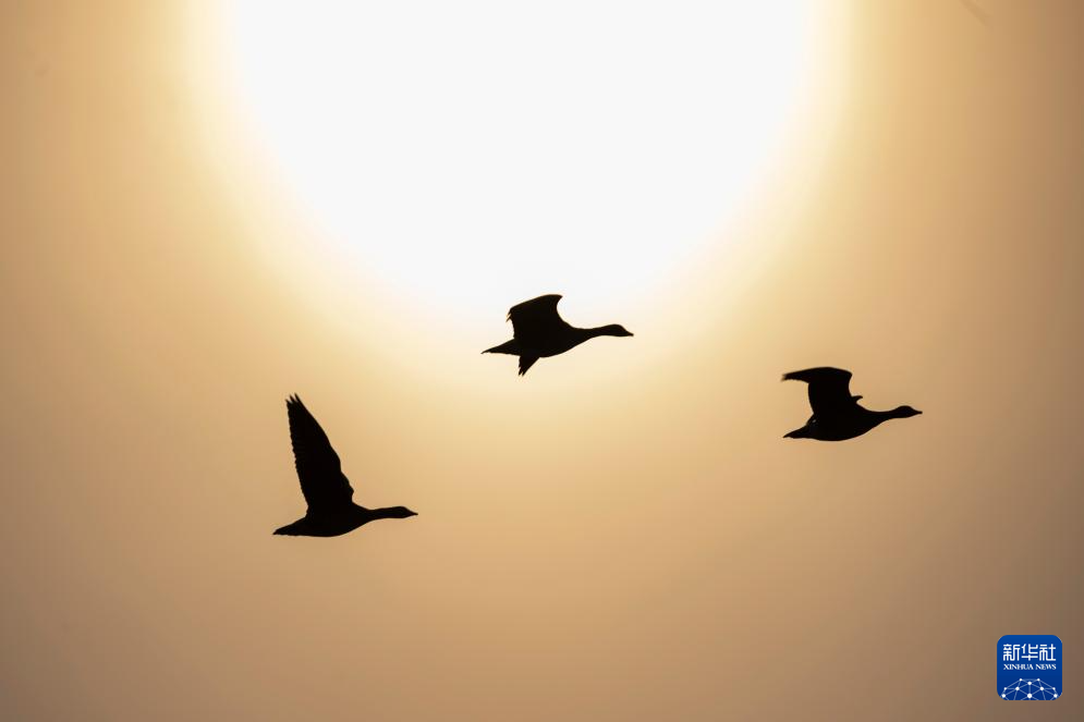 4月2日,候鸟在位于黑龙江省鸡西市的兴凯湖国家级自然保护区上空飞翔。新华社记者 谢剑飞 摄