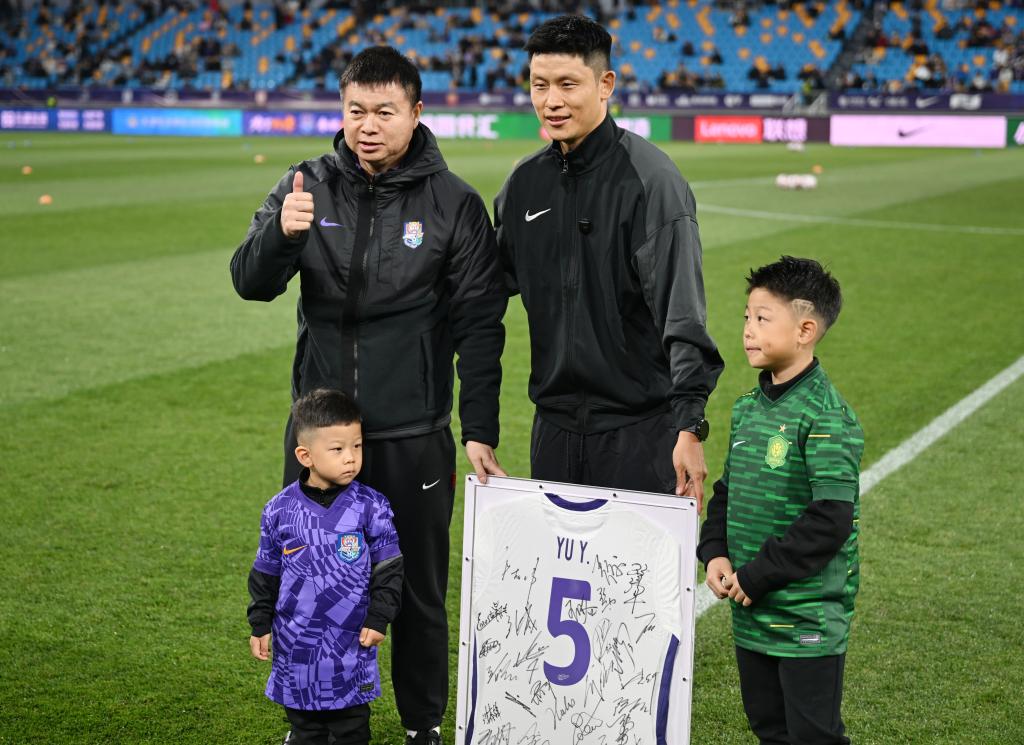 新华社天津4月5日电(记者张泽伟、宋瑞)2日晚的中超联赛“京津德比”开踢之前,举行了一场温馨的退役仪式。在北京国安和天津津门虎都效力过的35岁老将于洋,在现场球迷的见证和祝福中告别绿茵赛场。