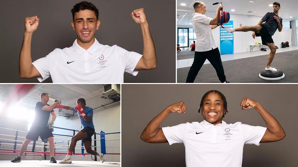 图为巴黎奥运会难民代表团的两名旗手,下图为恩甘巴。
