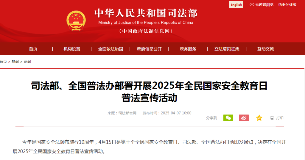 今年是国家安全法颁布施行10周年,4月15日是第十个全民国家安全教育日。司法部、全国普法办日前印发通知,决定在全国开展2025年全民国家安全教育日普法宣传活动。