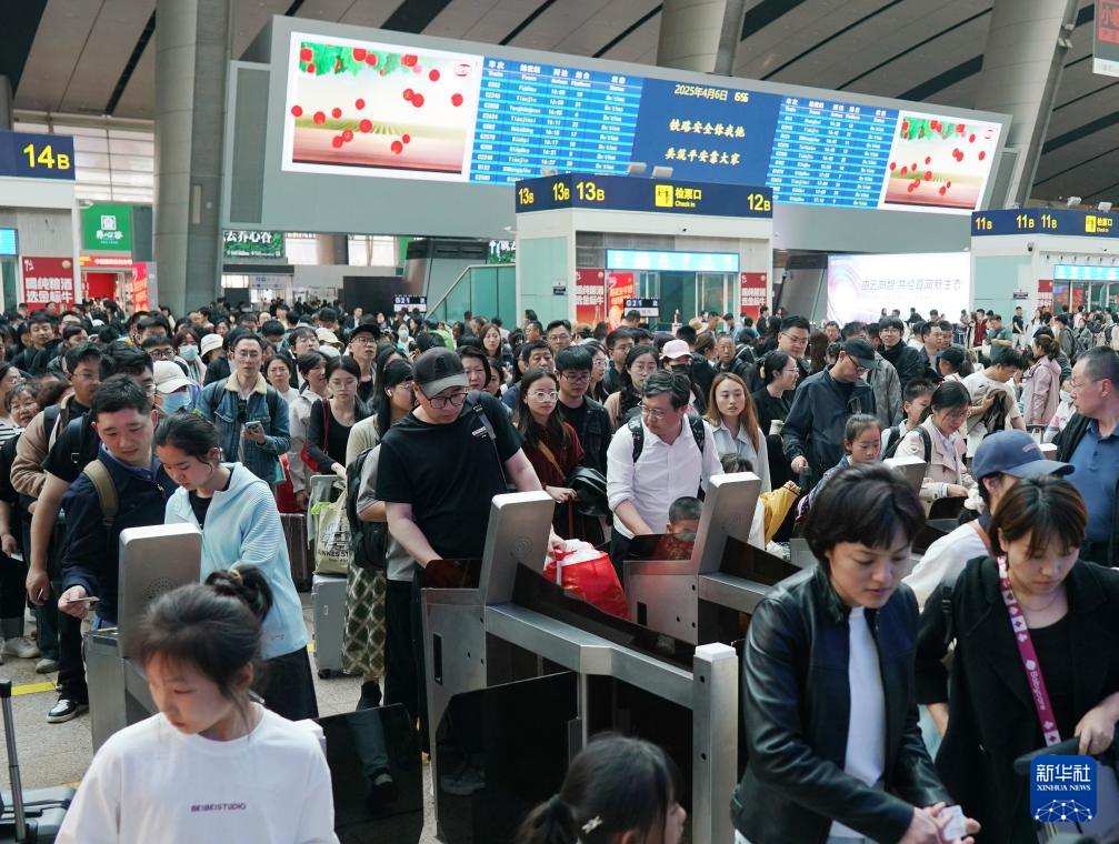 4月6日,旅客在北京南站检票乘车。新华社记者 张晨霖 摄