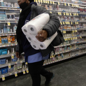 3月28日,顾客在美国纽约市一家药房购买卫生纸。新华社发(郭克摄)
