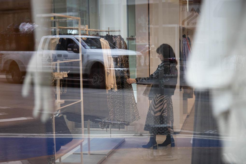 3月28日,顾客在美国纽约市一家服装店选购服装。新华社发(郭克摄)