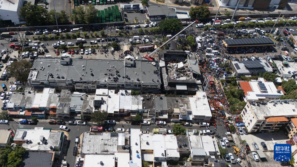 这是4月8日在多米尼加首都圣多明各拍摄的夜总会屋顶坍塌事故现场(无人机照片)。新华社发