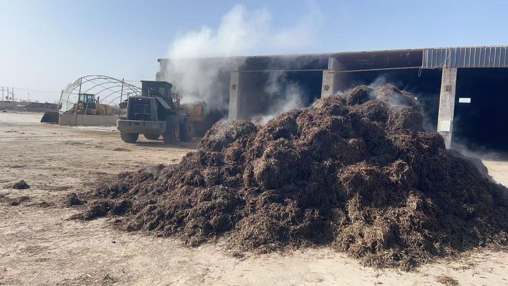 这是在张掖市临泽县食用菌产业园拍摄的秸秆发酵场景。新华社发(马学军摄)