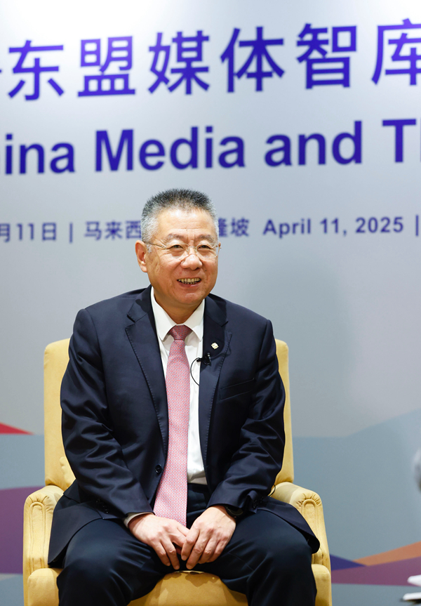 4月11日,中交集团副总经理陈重在中国-东盟媒体智库高端论坛期间接受采访。新华社记者 黄敬文 摄