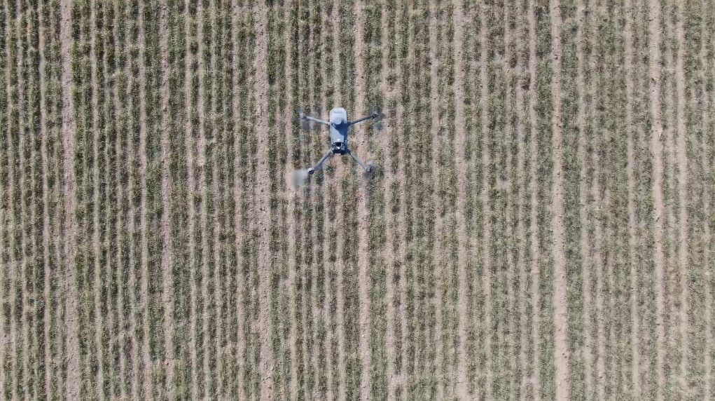 春耕时节,无人机在山东潍坊安丘市石堆镇的麦田上空巡田。(受访对象供图)