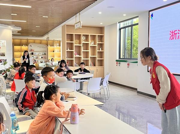 浙江理工大学马克思主义学院“弘扬科学家精神 践行红色科普使命”红信讲习团的成员走进杭州市前进街道,为小学生们宣讲科学家精神。主办方供图