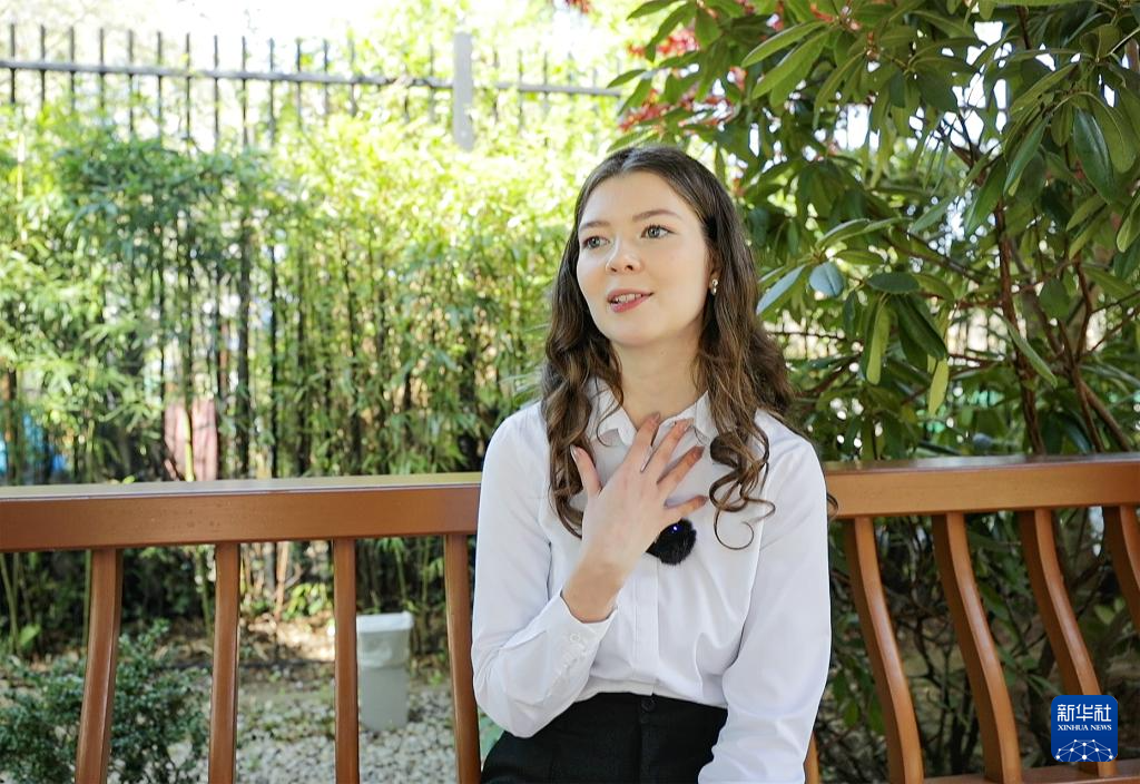 4月12日,在德国杜塞尔多夫,德国伯乐中文合唱团成员安娜·布吕梅克(中文名布姝婵)接受采访。新华社记者 张帆 摄
