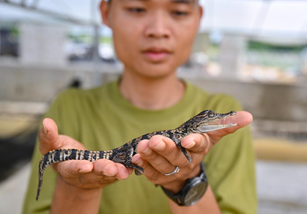 “这里气候温暖、日照充足、降雨较少,非常适合鳄鱼生长,商品鱼养殖周期显著缩短。”公司行政总监胡蕴介绍说,公司设计建设了各种类型的标准化养殖池,并不断优化人工孵化和养殖技术。公司效益持续提升,年产值突破1.4亿元。