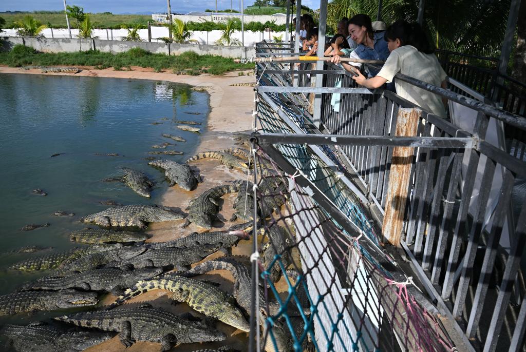 游客在鳄珍鳄鱼园游玩。新华社记者 郭程摄