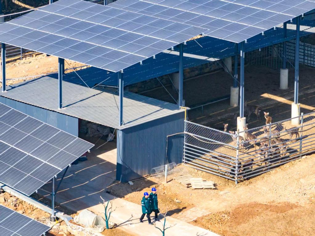 从现代农业园区到山乡地头,光伏与农业的融合模式正不断拓展。在兰陵县下村乡西马山村的半山坡上,装机容量为5.99兆瓦的光伏板如蓝色铠甲覆盖山体,光伏板下200余头梅花鹿悠然踱步。村党支部书记李庆英说,板上发电、板下养殖,节约土地资源还提高养殖效益,外加山坡上种植的蜜桃和冬桃,昔日荒山如今成了致富“金山”。