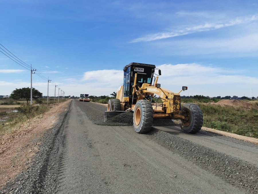 这是2020年12月21日在柬埔寨磅干丹省拍摄的中国援柬乡村道路项目二期施工现场。新华社发(上海建工集团供图)