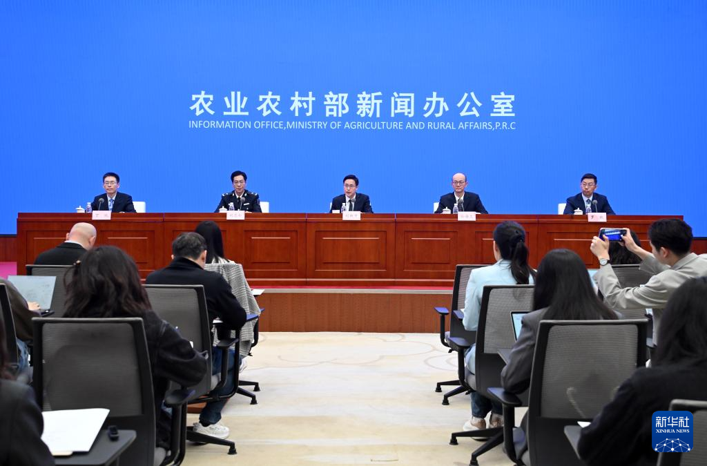 4月16日,农业农村部在北京举行新闻发布会,介绍中国加入《关于预防、制止和消除非法、不报告、不管制捕鱼的港口国措施协定》和全球打击非法捕捞制度体系相关情况,并回答记者提问。新华社记者 陈晔华 摄