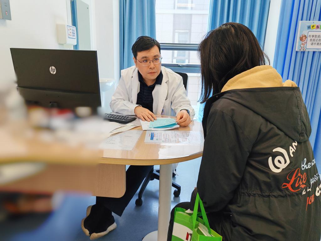 北京大学第一医院泌尿外科副主任、主任医师虞巍正在接诊患者。(北京大学第一医院供图)