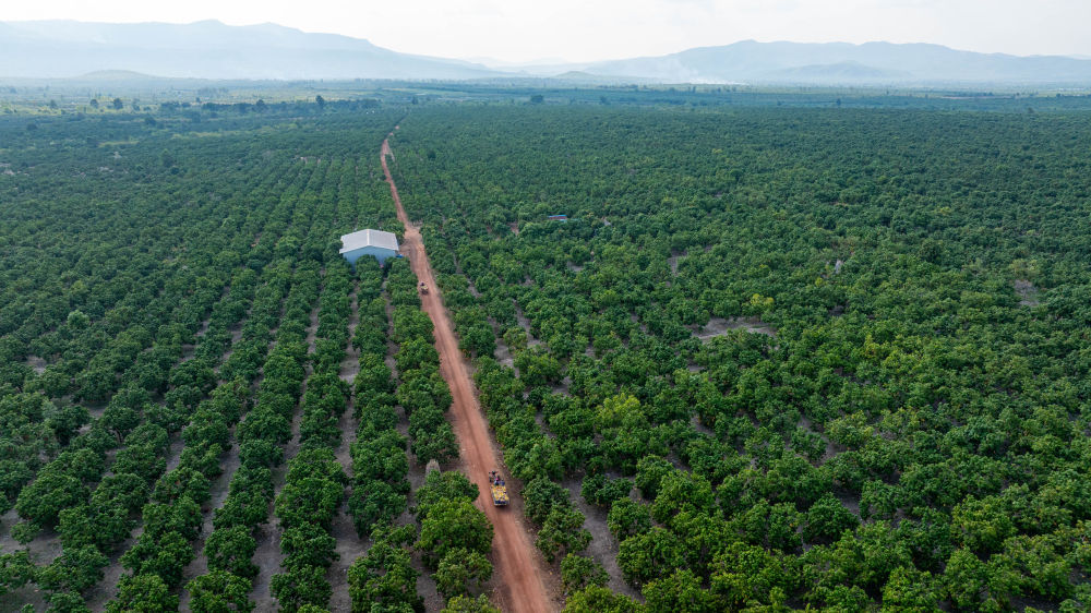 ↑柬埔寨磅士卑省尖山县的芒果园(无人机照片)。