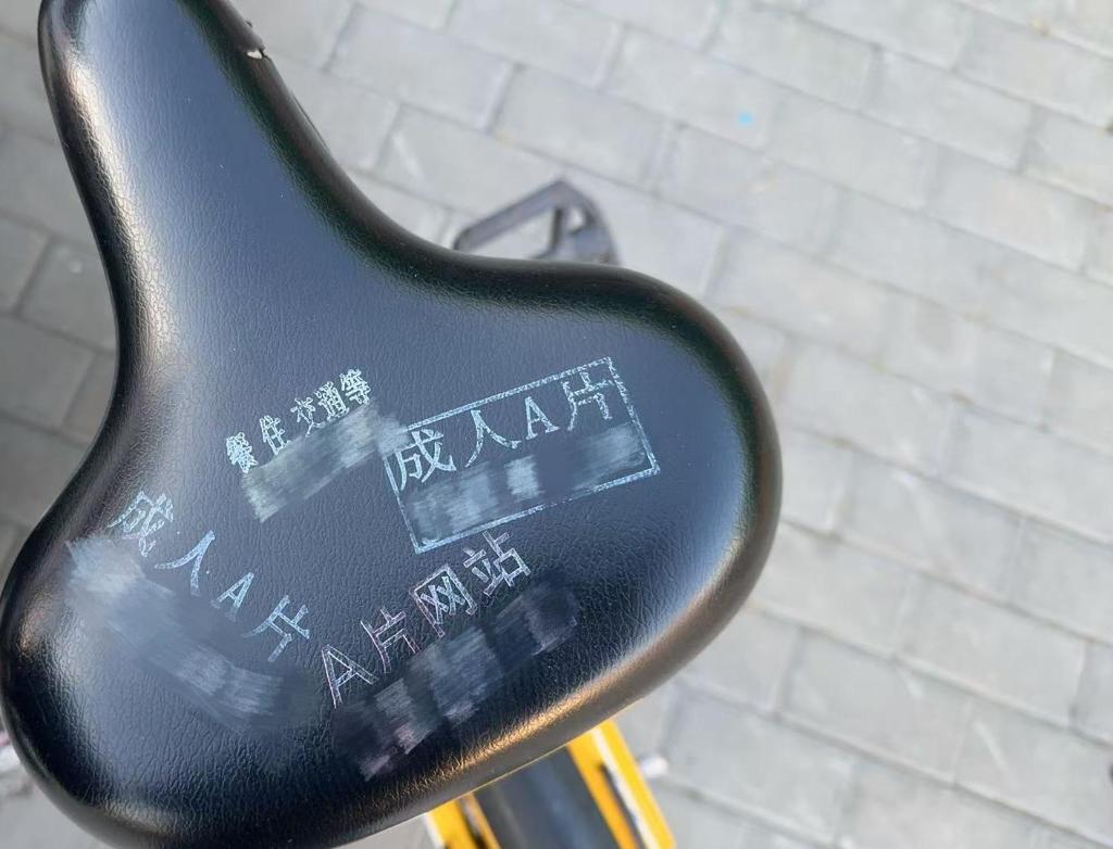 有运营企业负责人表示,小广告的张贴方式花样频出,加大了清理成本。“现在有拿强力胶粘贴的,也有用印章涂印在车座上或通过喷漆喷印在车身不同位置的。”