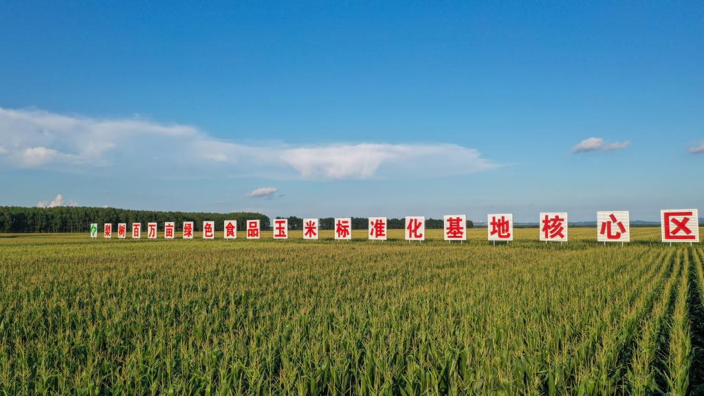 这是吉林省梨树县国家百万亩绿色食品原料(玉米)标准化生产基地核心示范区(无人机照片)。新华社记者 张楠 摄