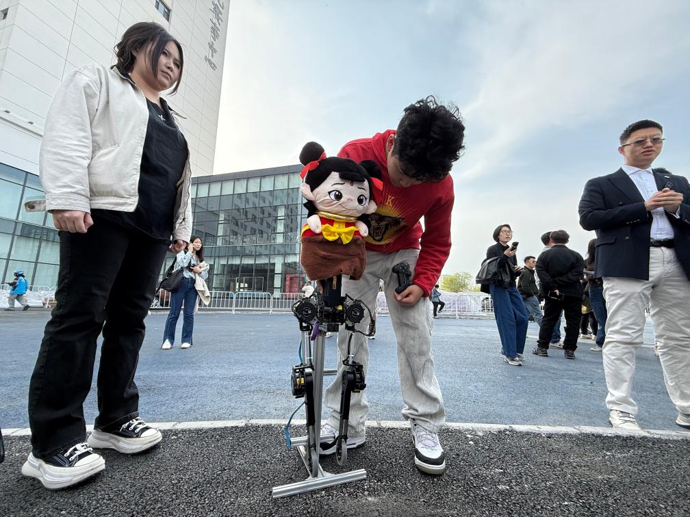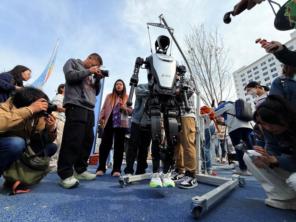 4月9日,人形机器人团队在户外测试场地紧张备赛。新华社记者 张骁 摄